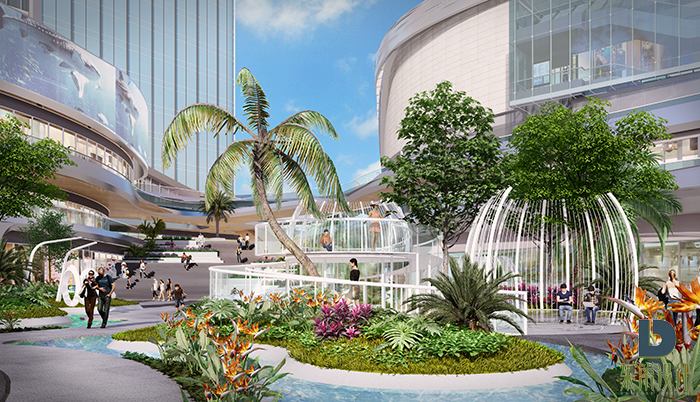 設計創造了一種新的方式來體驗不同層次的景觀和商店。但更重要的是,人們可以從購物中心較高的主要入口層進入較低層的廣場。這些通道對所有使用者都是友好的,有輕微的坡度,是殘疾人可以使用的。 · 步行街的微氣候是由景觀設計和創新工程綜合控制的讓植物能在一個比較理想的溫度下生長。