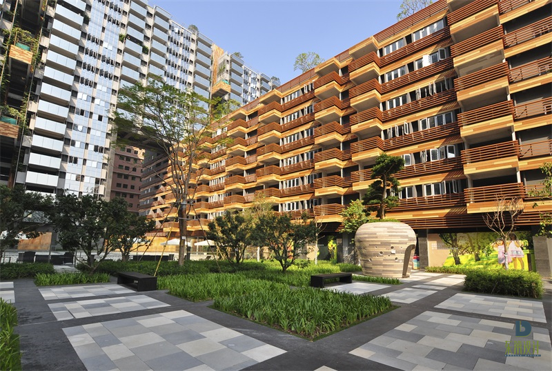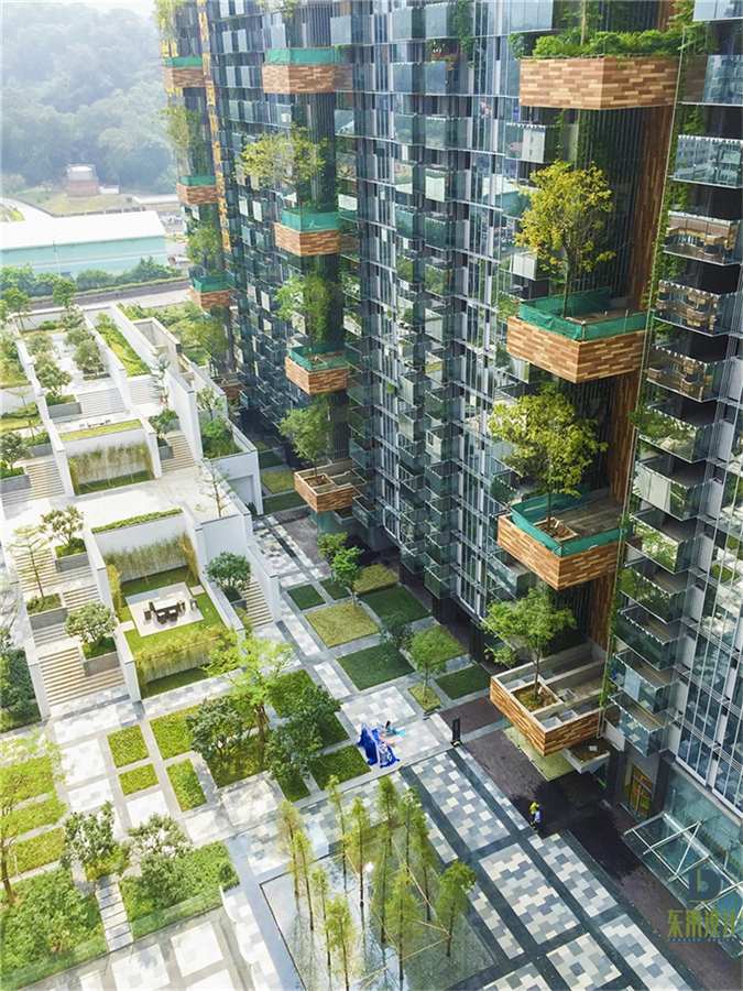 廣州首個綠色建筑三星標識項目,取法自然,呼應云山。外面綠墻采用東籬特有的專利技術,形成良好的立體綠墻效果。在屋頂等使用了東籬專利蓄排水生態循環系統和墊高器技術,打造綠色環保、自然、詩意的森林是居住體驗。