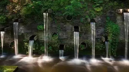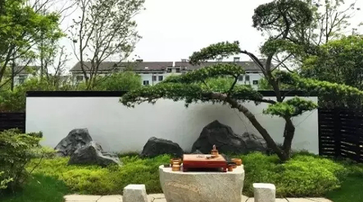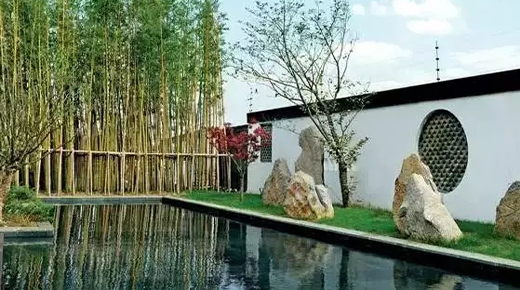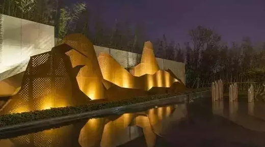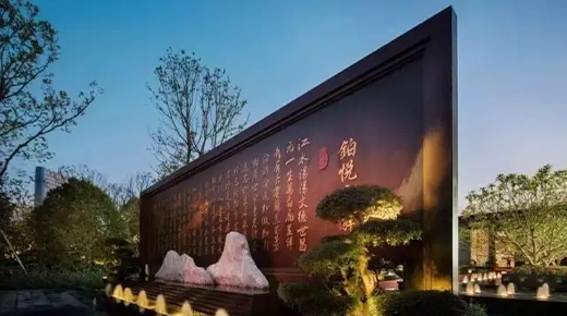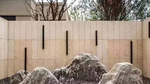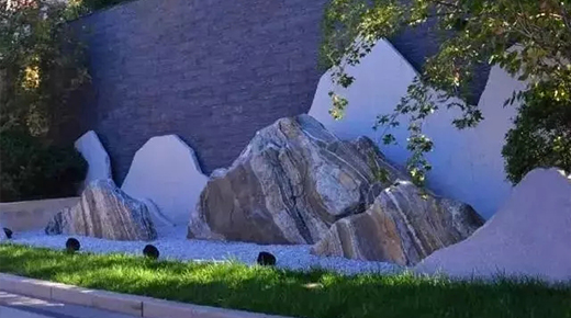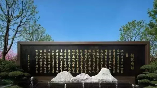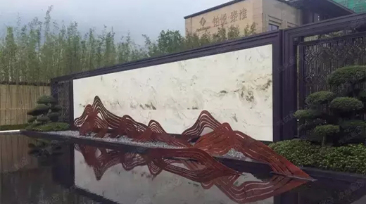 雕塑,抑或其他山水主題元素,融入景墻后,都能營造出自然山水的意趣。